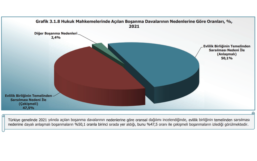 An analysis of the statistics published for 2021 shows that 50.1% of the divorce cases filed were uncontested, while 47.5% were contested.